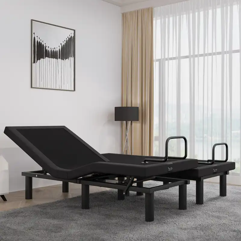 The smooth power-lift system quietly raises the bed’s head, foot, or both to customize comfort for each side. Includes two wireless remote controls that let you adjust to a pre-set or flat position with the touch of a button. A split king adjustable motorized bed frame makes working or reading in bed more convenient; plus it helps reduce snoring, back pain, sleep apnea and acid reflux. This king motorized bed frame fits two long single mattresses, sold separately.
